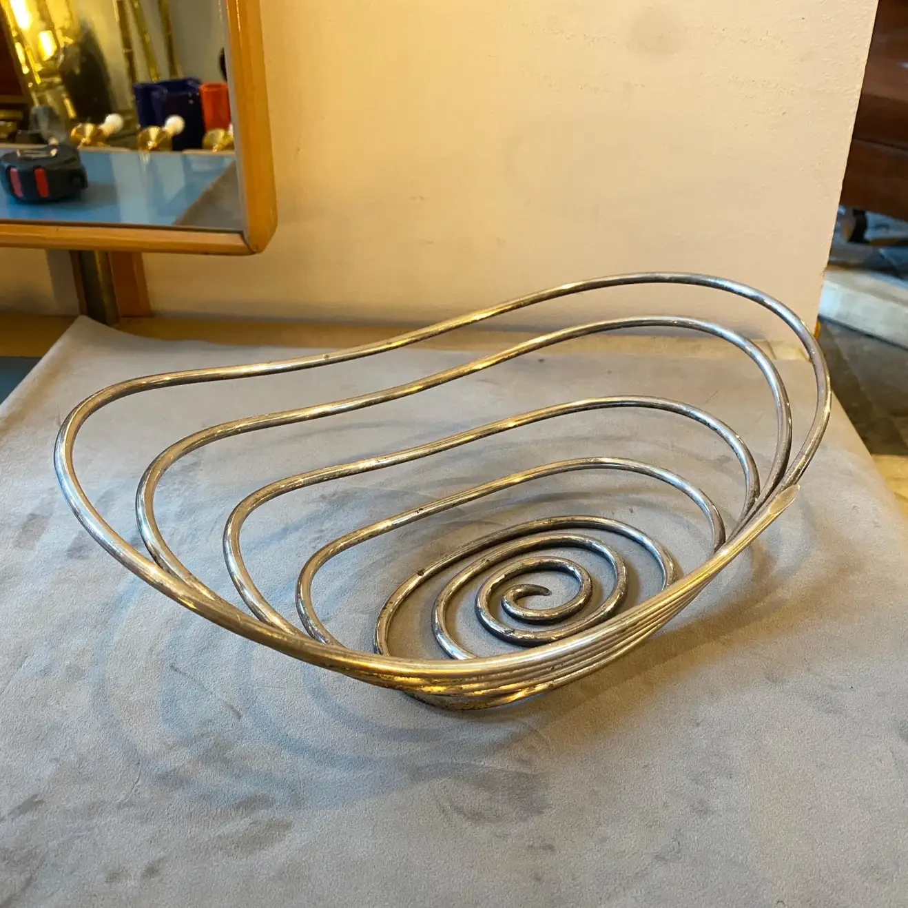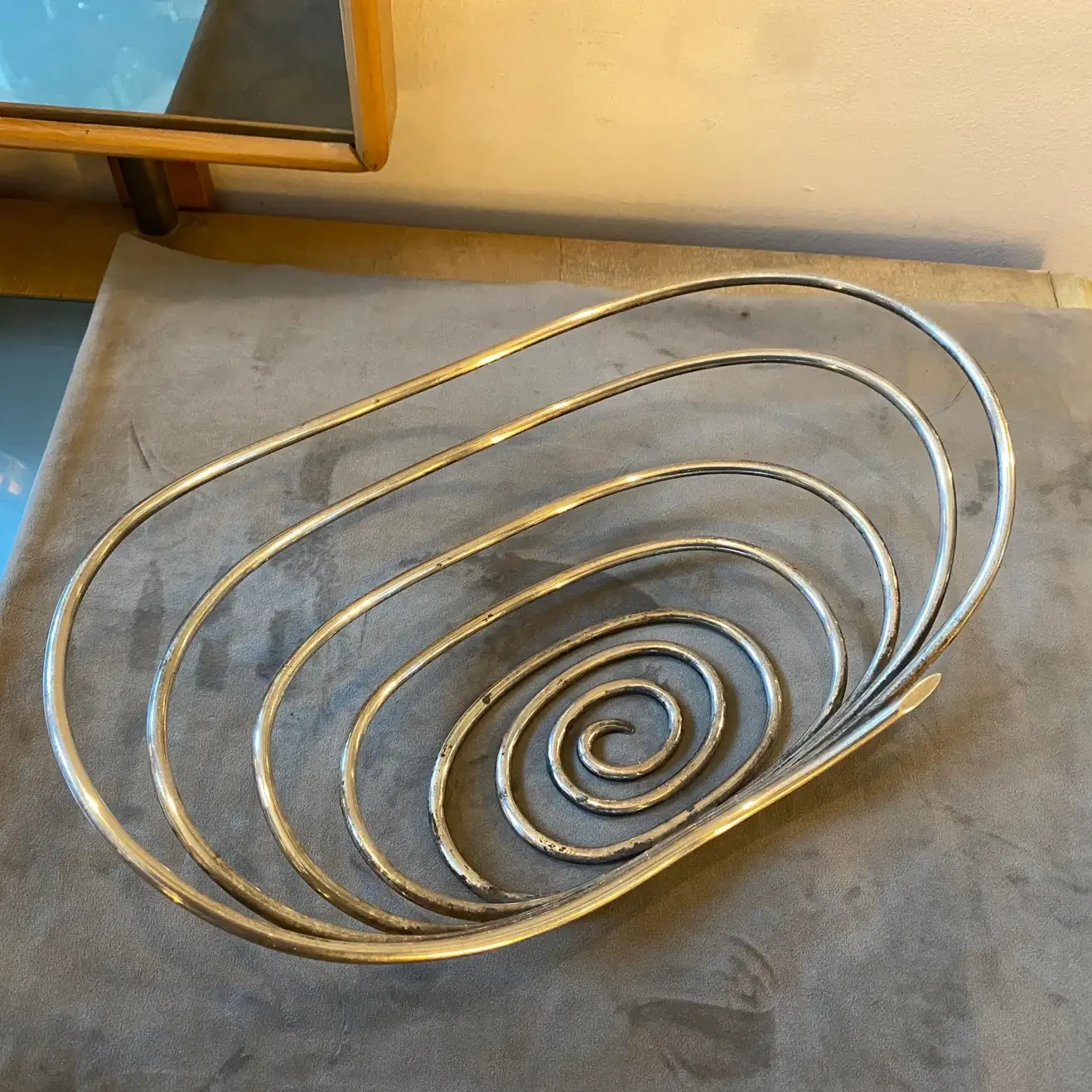 A stylish silver plated spiral bowl made in Italy in the Seventies by Sabattini argenteria. this piece it’s in original …