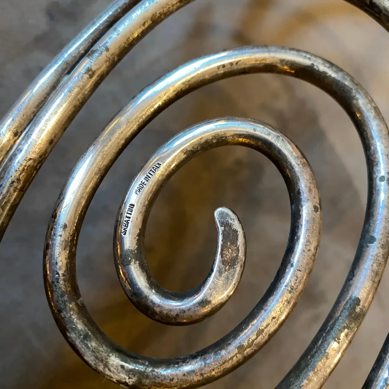 A stylish silver plated spiral bowl made in Italy in the Seventies by Sabattini argenteria. this piece it’s in original patina, it can be easily cleaned. It’s an iconic modernist piece of the italian designer Lino Sabattini.