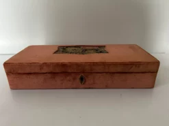 Inlaid Coffin from Beverly Hills Estate of Ann Miller, the late great hoofer. Original velvet lining and mirror.