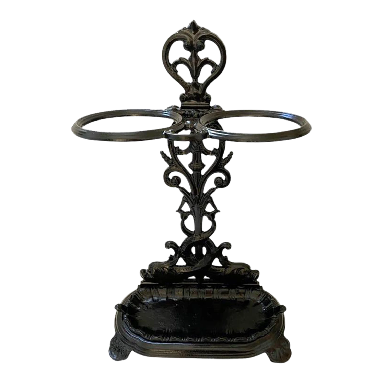 This stylish English Georgian style umbrella holder dates to the late 19th Century. The piece is detailed with two upturned stylized fish, which is a reminder of when Britain ruled the seas with its vast global empire.
