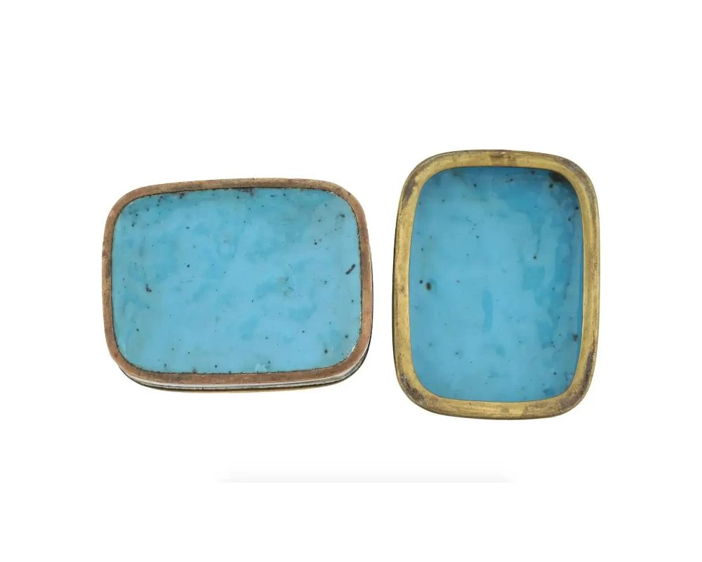 An antique Japanese Meiji Era covered enamel brass kogo or box for incense. Circa: late 19th century to early 20th …