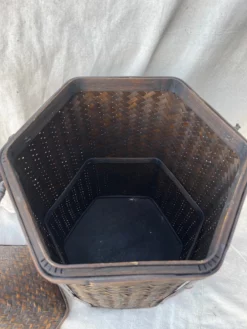 Vintage Asian Woven Rattan/Bamboo Hexagon Lidded Basket
