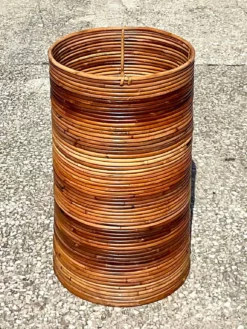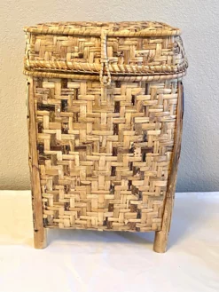 Vintage Bamboo Rattan Footed Large Lidded Basket