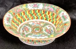 19th Century Chinese Rose Medallion Reticulated Porcelain Basket