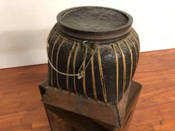 Antique Asian Rice Basket With Wooden Base