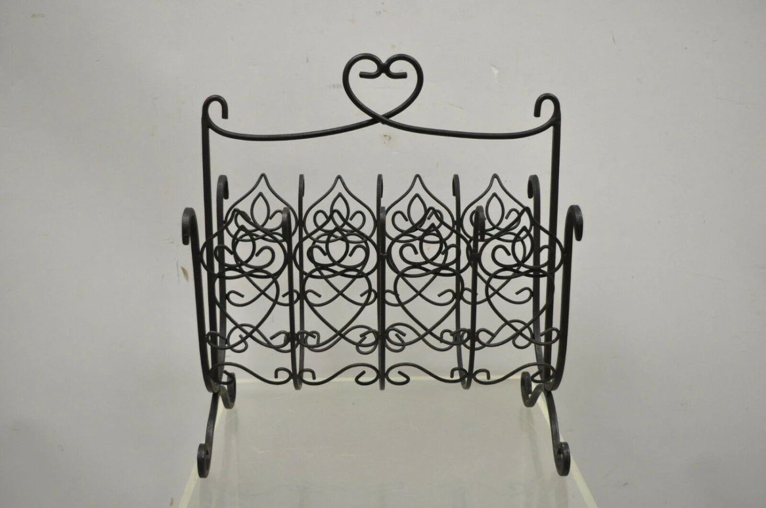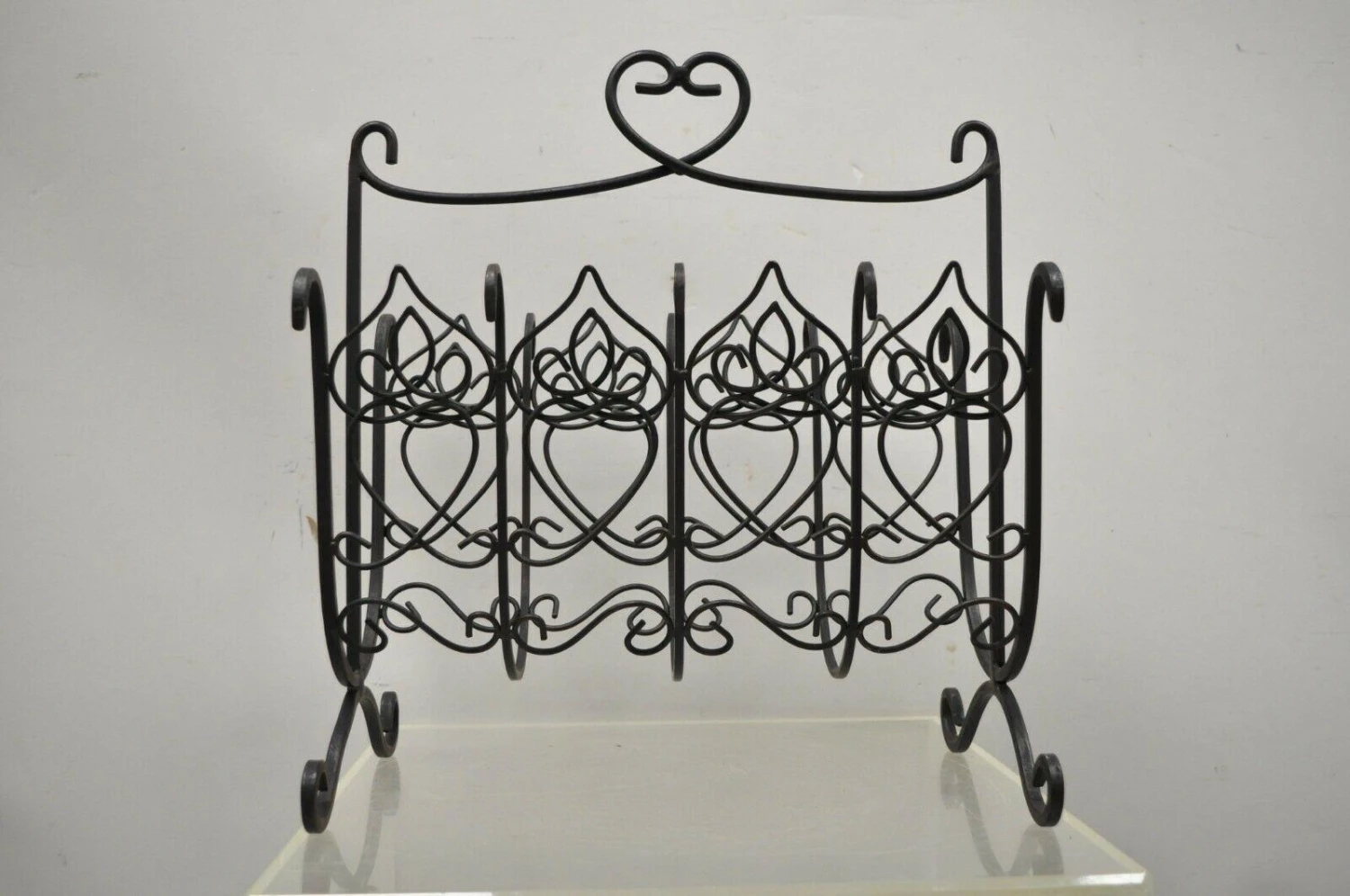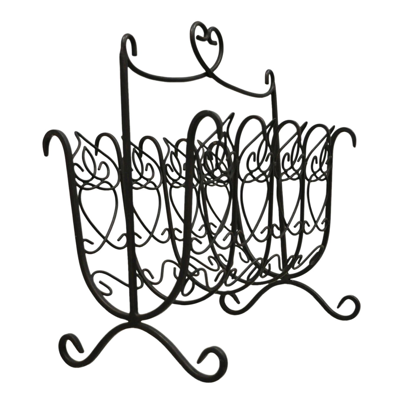 French Style Scrolling Wrought Iron Magazine Rack Stand with Heart. Item features scrolling wrought iron frames, heart design, great style …