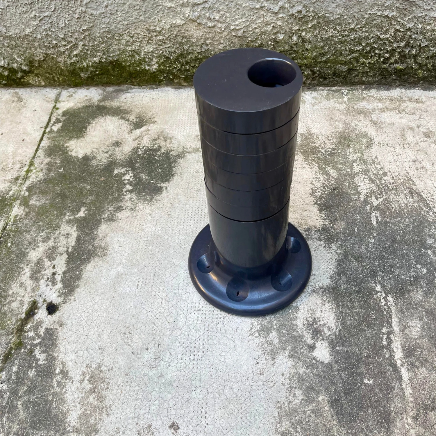 Gray jamber called Pluvium designed by Giancarlo Piretti and performed by Anonima Castelli, Italy, 1960s. The support is able to contain six umbrellas when it is open. Its special feature is that the stand holders are removable or closable, if necessary.