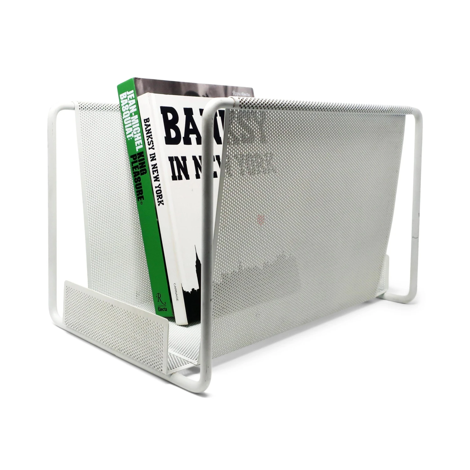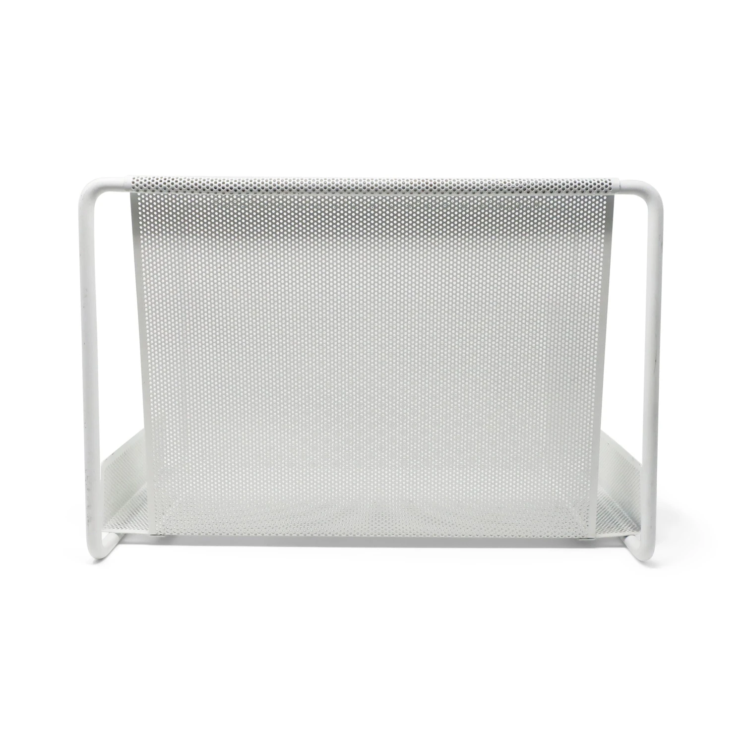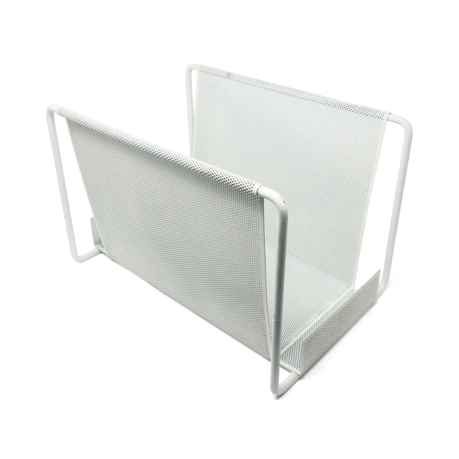 A lovely 1980s punched metal magazine rack with a white tubular metal frame. Perfect for magazines, books, or vinyl records …