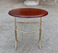 Vintage Hollywood Regency Boho Brass Rattan Magazine Rack Side Table