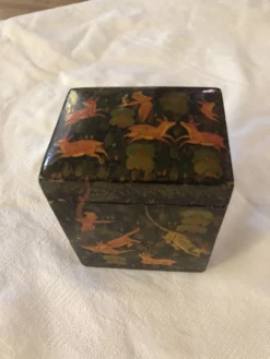 Vintage Kashmir Lacquered Hand Painted Paper Mache Playing Card Box