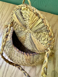 Vintage Native American-Style Woven Pine Needle Lidded Basket