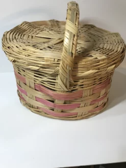 Vintage Oval Wicker Basket With Lid And Handle – Made In Mexico