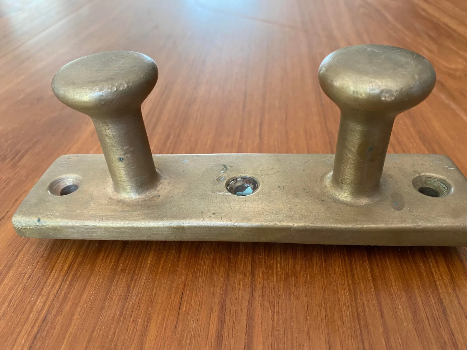 Vintage solid brass boat dock cleat with two hooks. Would be great towel hooks in a bathroom or pool area. …