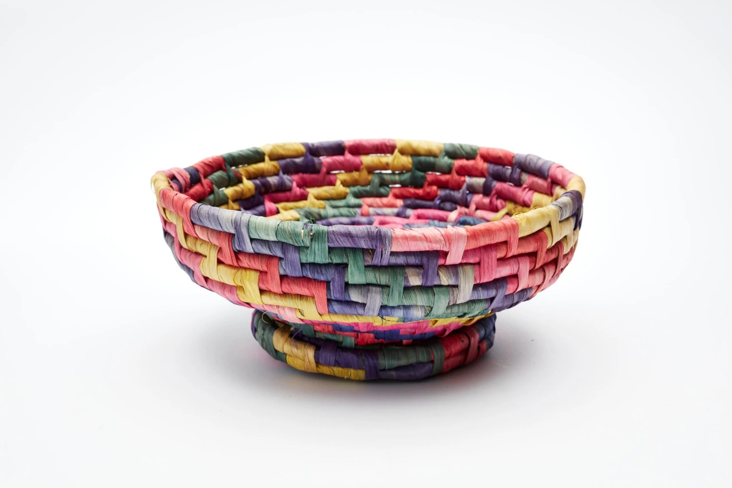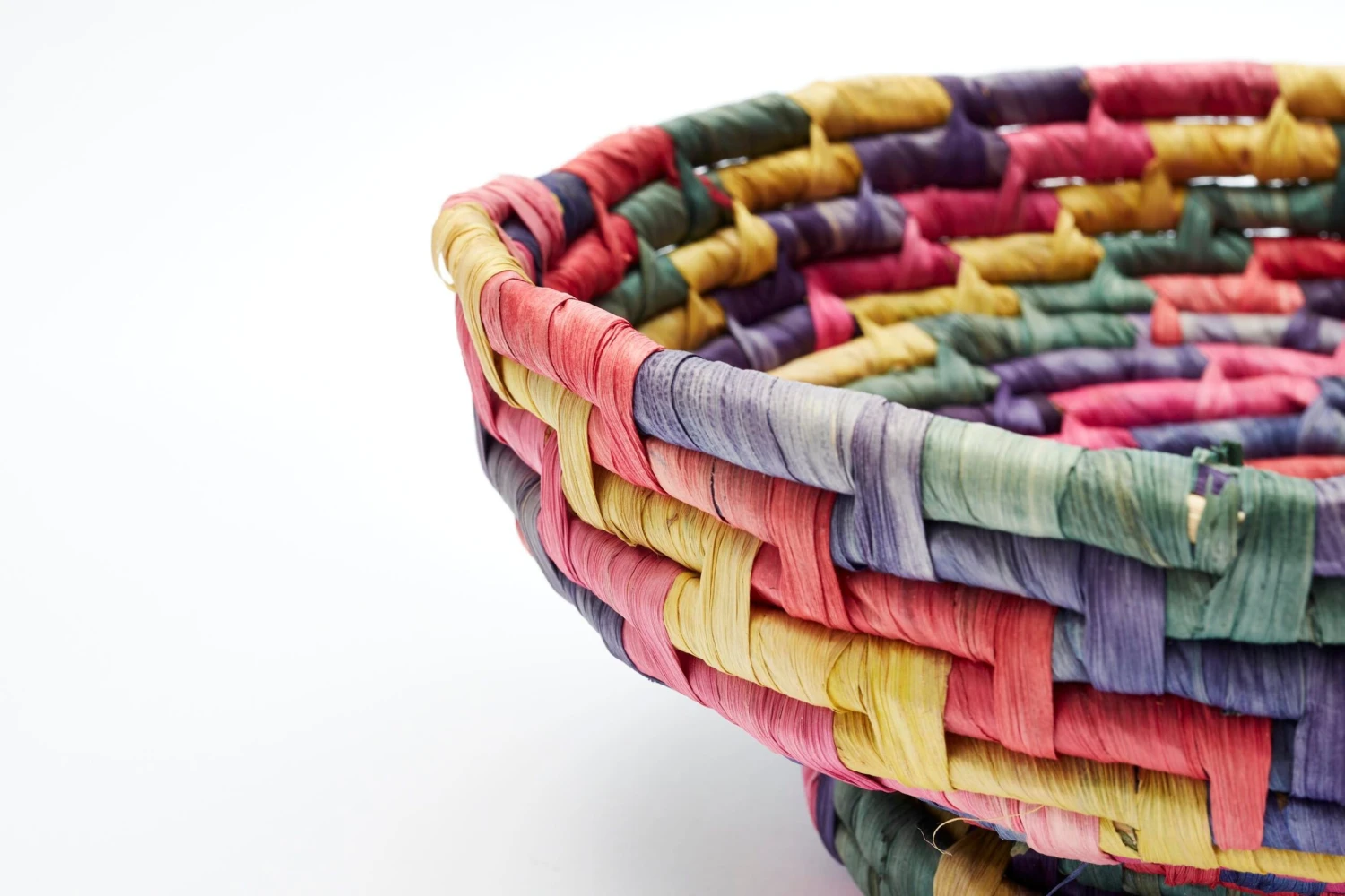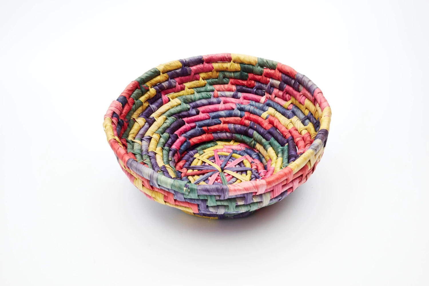 Fun and festive vintage baskets in rainbow colors from the 1980s.