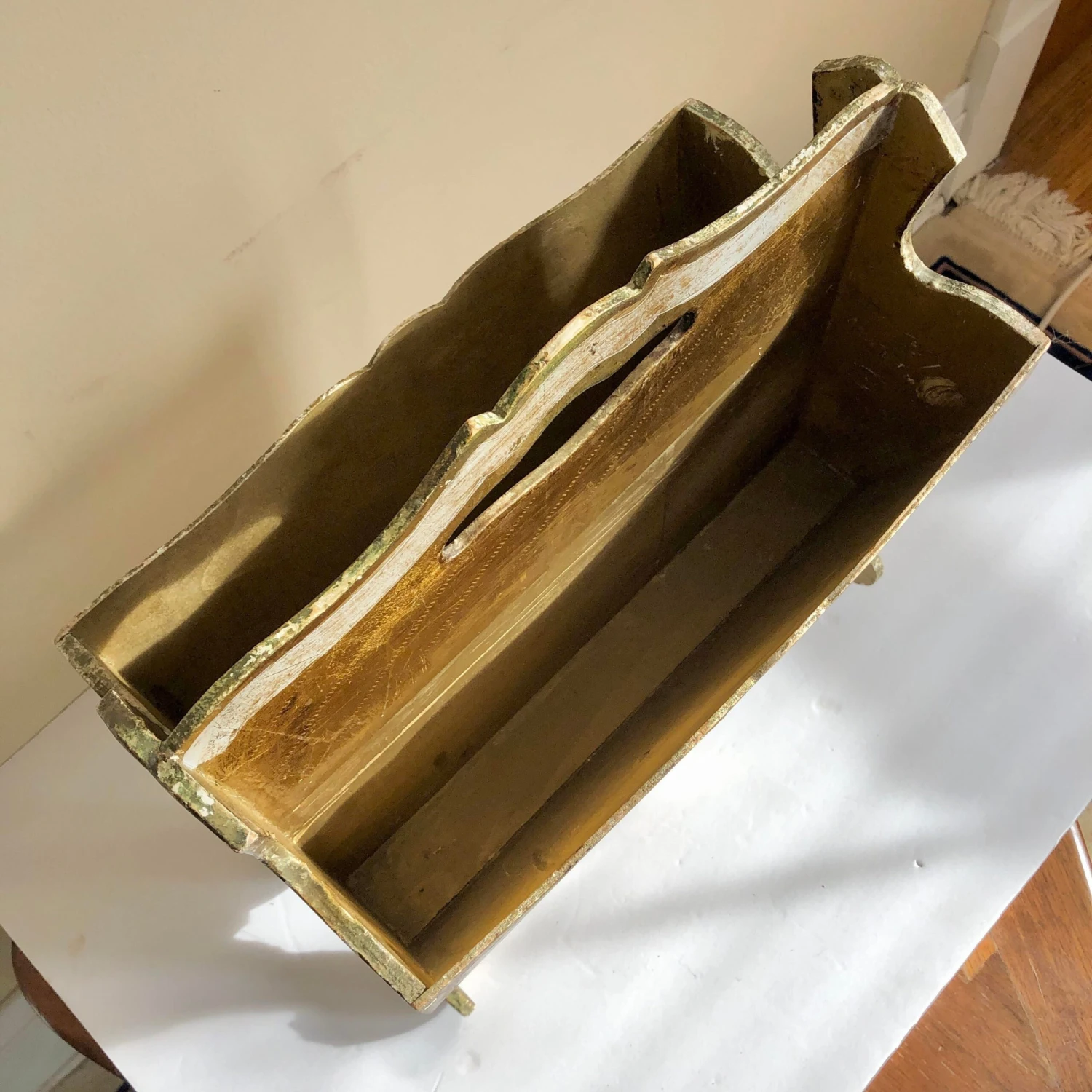 Vintage Florentine Italian gilt wood and lacquer magazine rack.