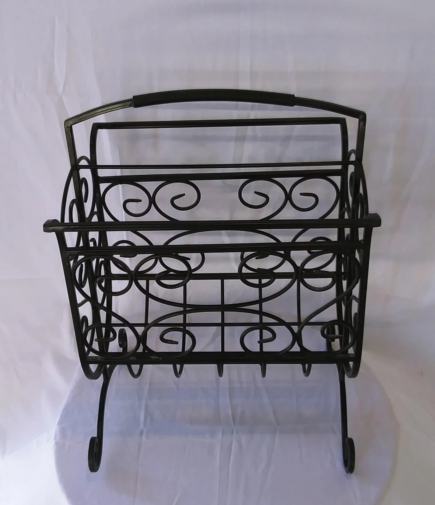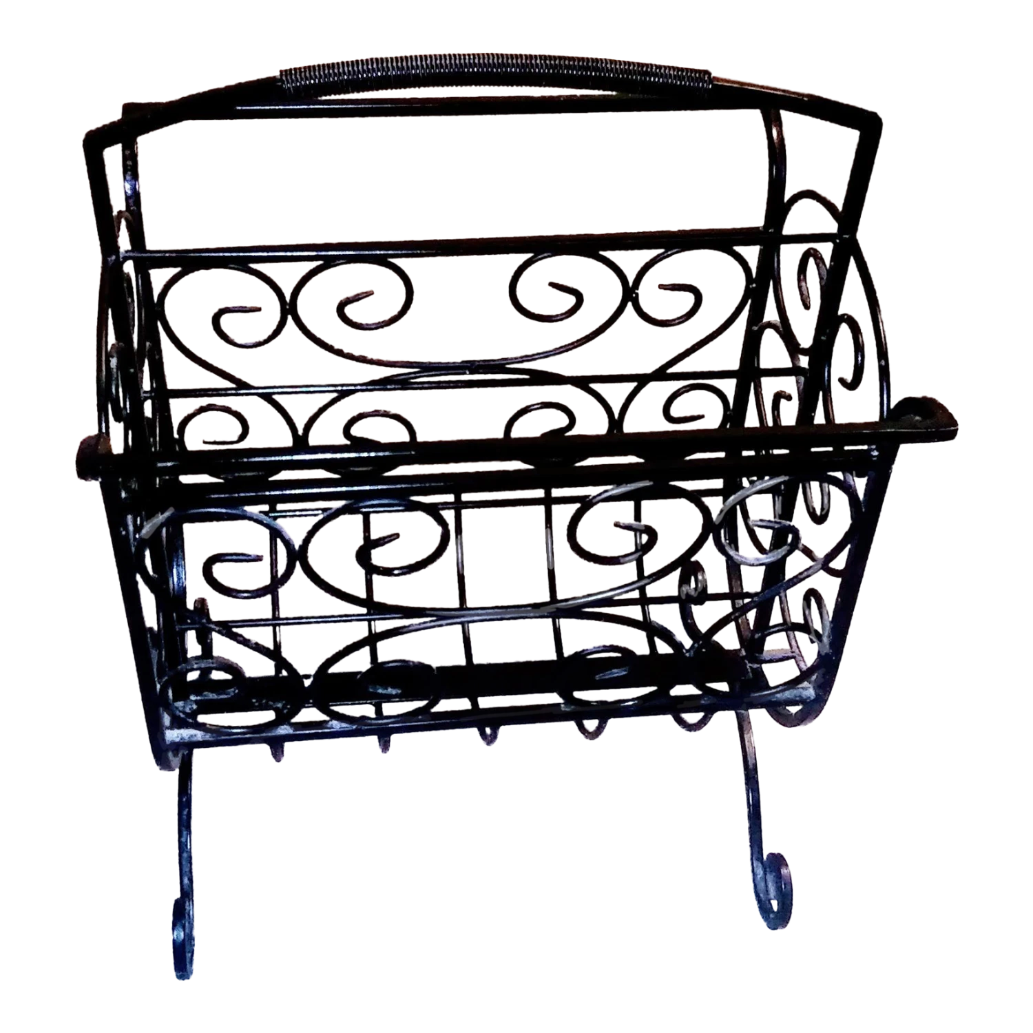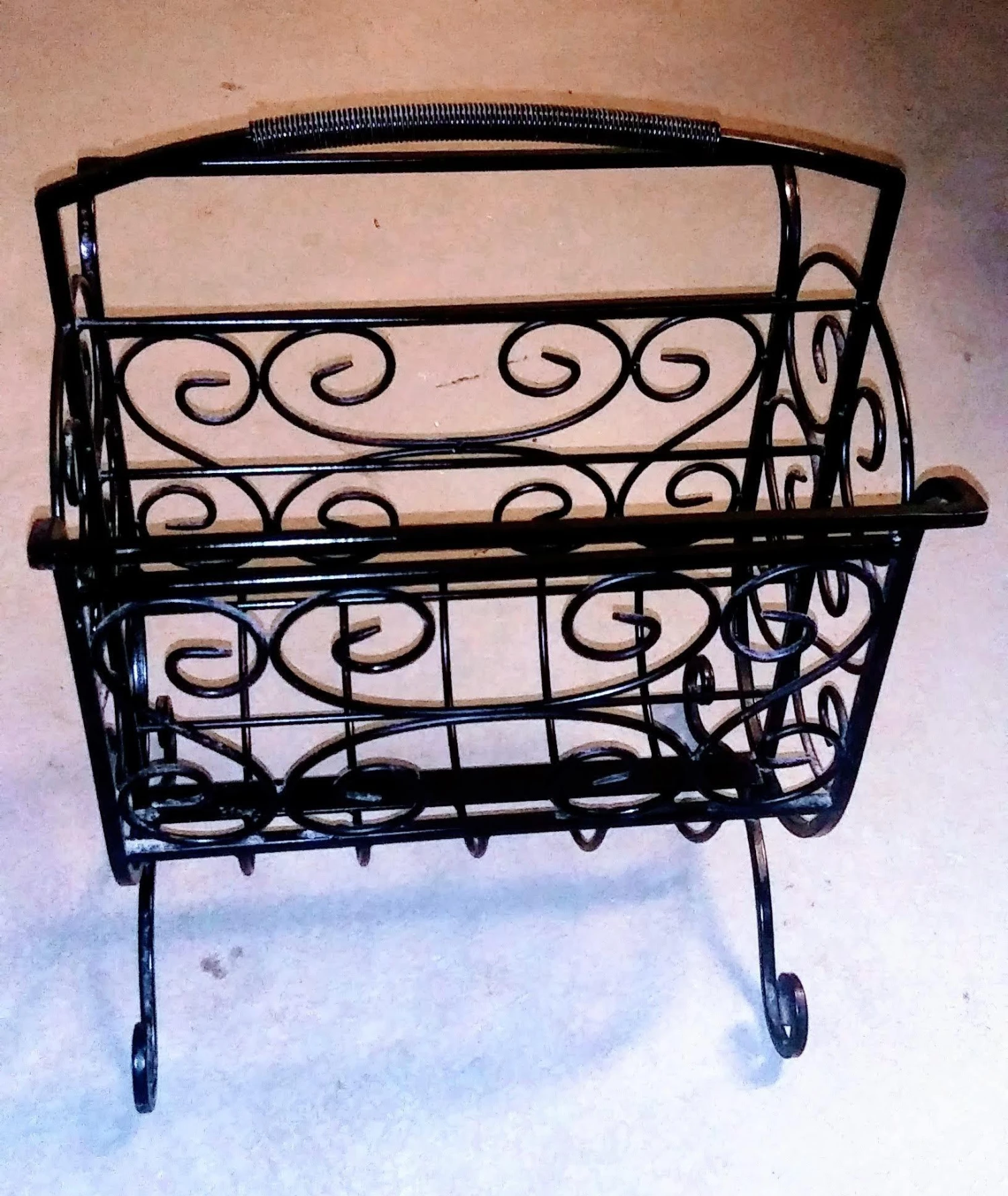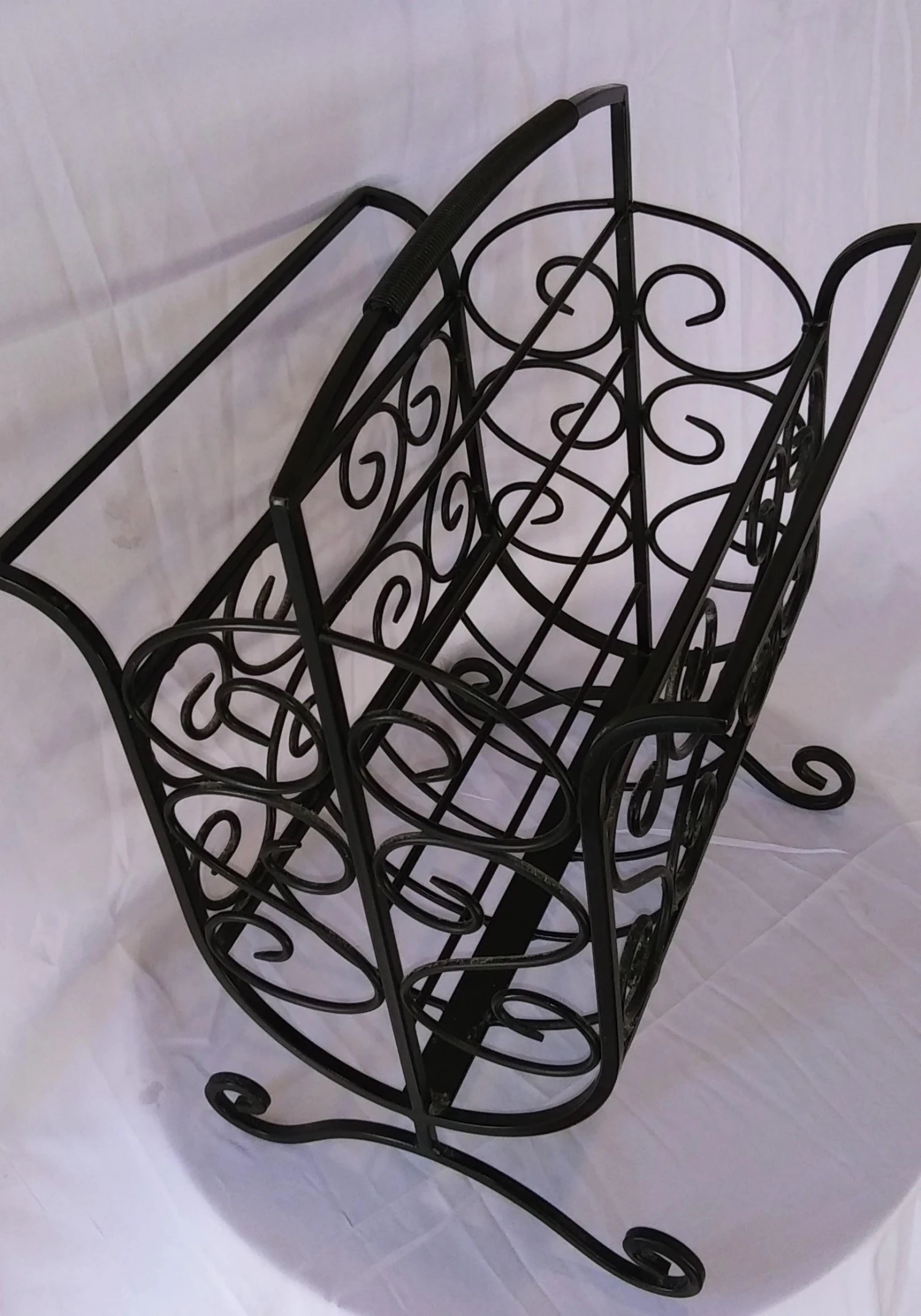 What a splendid wrought iron work of art, also known as a magazine rack. This sturdy piece weighs about 10 …