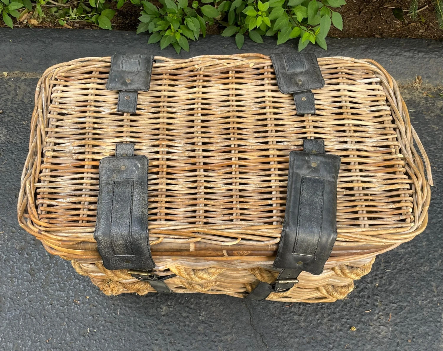 Marvelous French Laundry Basket or Linen Trunk typically used in hotels. Hinged top with rope handles, this trunk has a great look. Sturdy! Please see my other french trunk listing as well, it’s slightly smaller but otherwise the same.