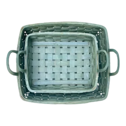 The large basket measures 18 w x 13 3/4″ d x 4″ h and the smaller one 14 3/4″w x 12 1/8″ d x 3″ h.