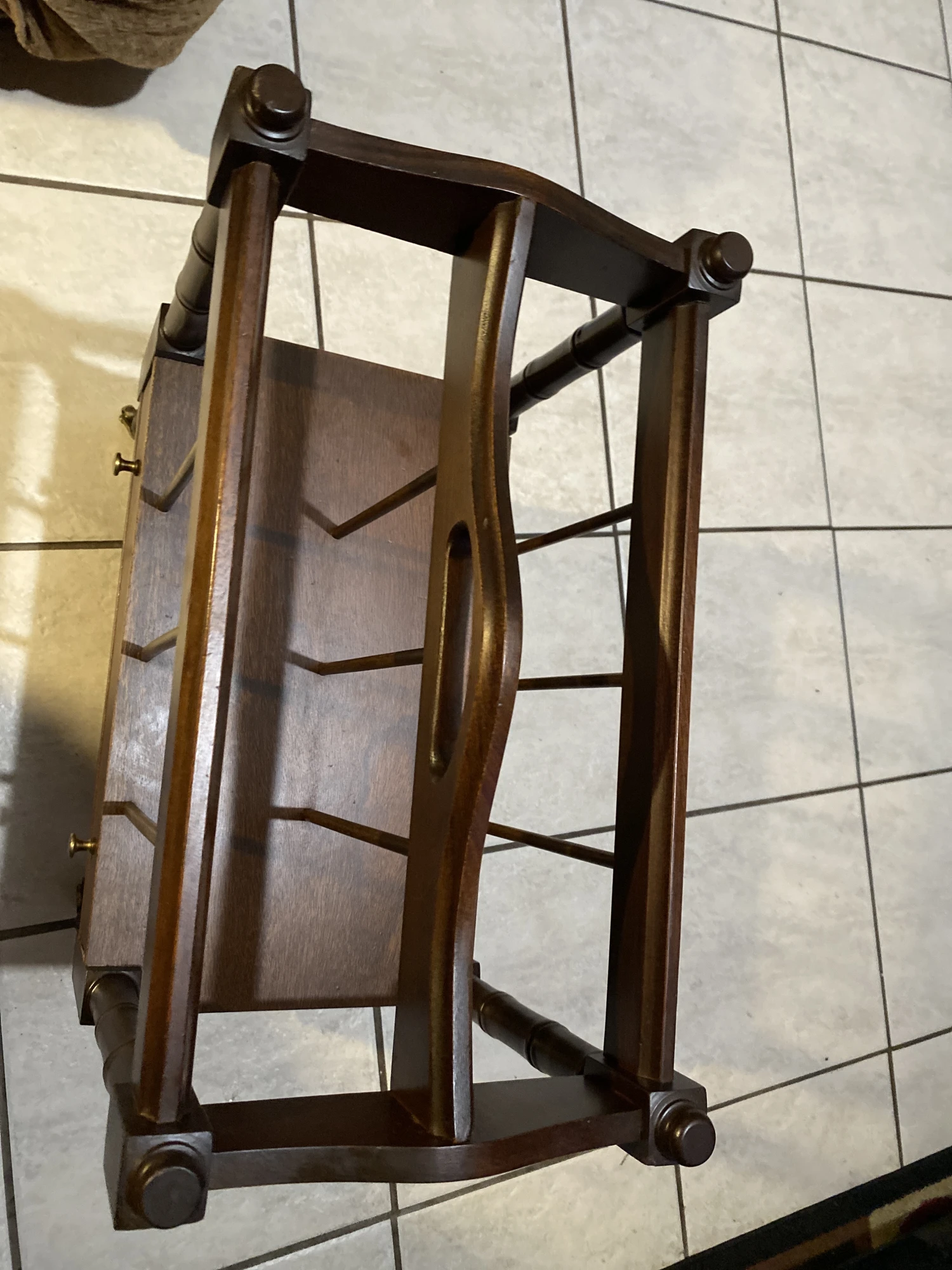 Nice vintage mahogany dovetailed pull front drawer magazine rack in great condition. It has four rolling wheels and measures approx. …