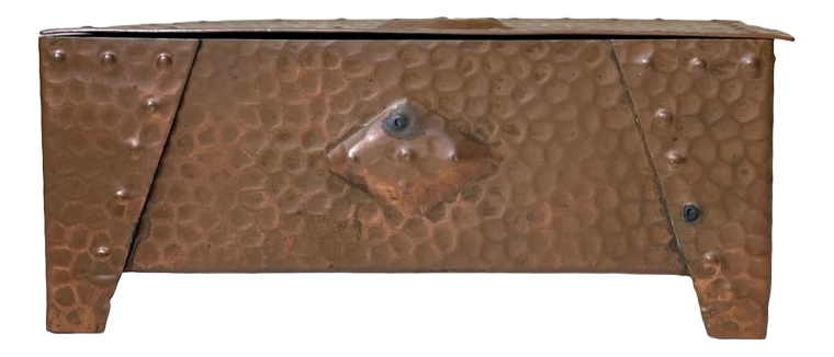 A wellmade and beautifully patinated box in hammered copper. Suitable for Jewelry or small personal items. Distinct brutalist styling with …